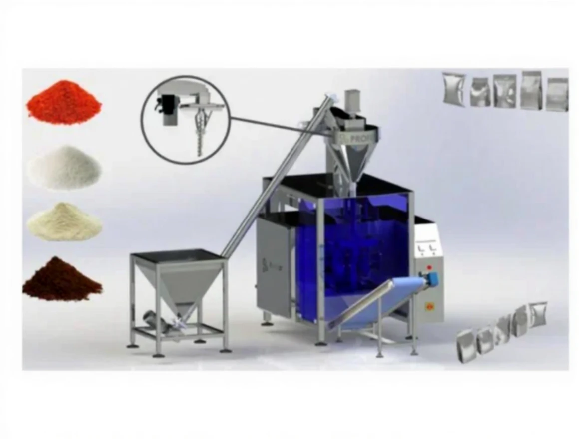 Profest Machine PRO-P100 Vertical Packaging and Filling Machine: Every type of non-free-flowing powder such as spice, coffee, cream, milk powder, starch, paprika, chili powder, additives, cocoa, powdered sugar, coconut, vanilla, mint, cumin, baking soda, agricultural powder pesticides, cement, plaster, joint filler, powder chemicals and fine granular products can be filled easily with precise screws. The product weight is adjusted by controlling the rotation of precise screws. It is compatible with many packaging materials (Aluminum Foil, 0PP+OPP, 0PP+PE, Metallize+AL+PE.) Packaging capacity can vary between 20 packages/minute and 50 packages/minute depending on the type of product, packaging foil type, package size, and weight. It can work with all electronic weighing systems. Vertical Packaging comes with a simple menu and touch HDMI control panel for adjusting the bag size and speed settings. It operates with a controllable heat printing PID system.