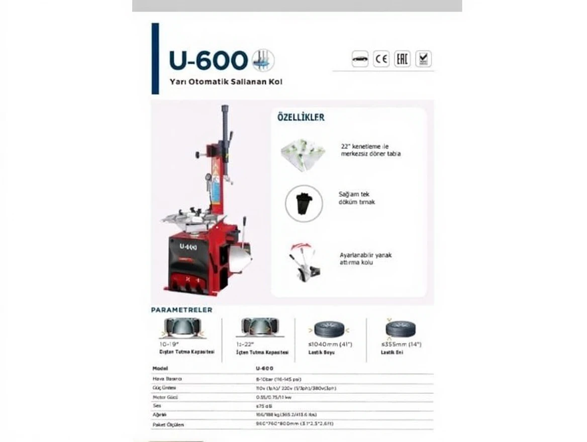Unite U-600 Semi-Automatic Tire Dismounting and Mounting Machine