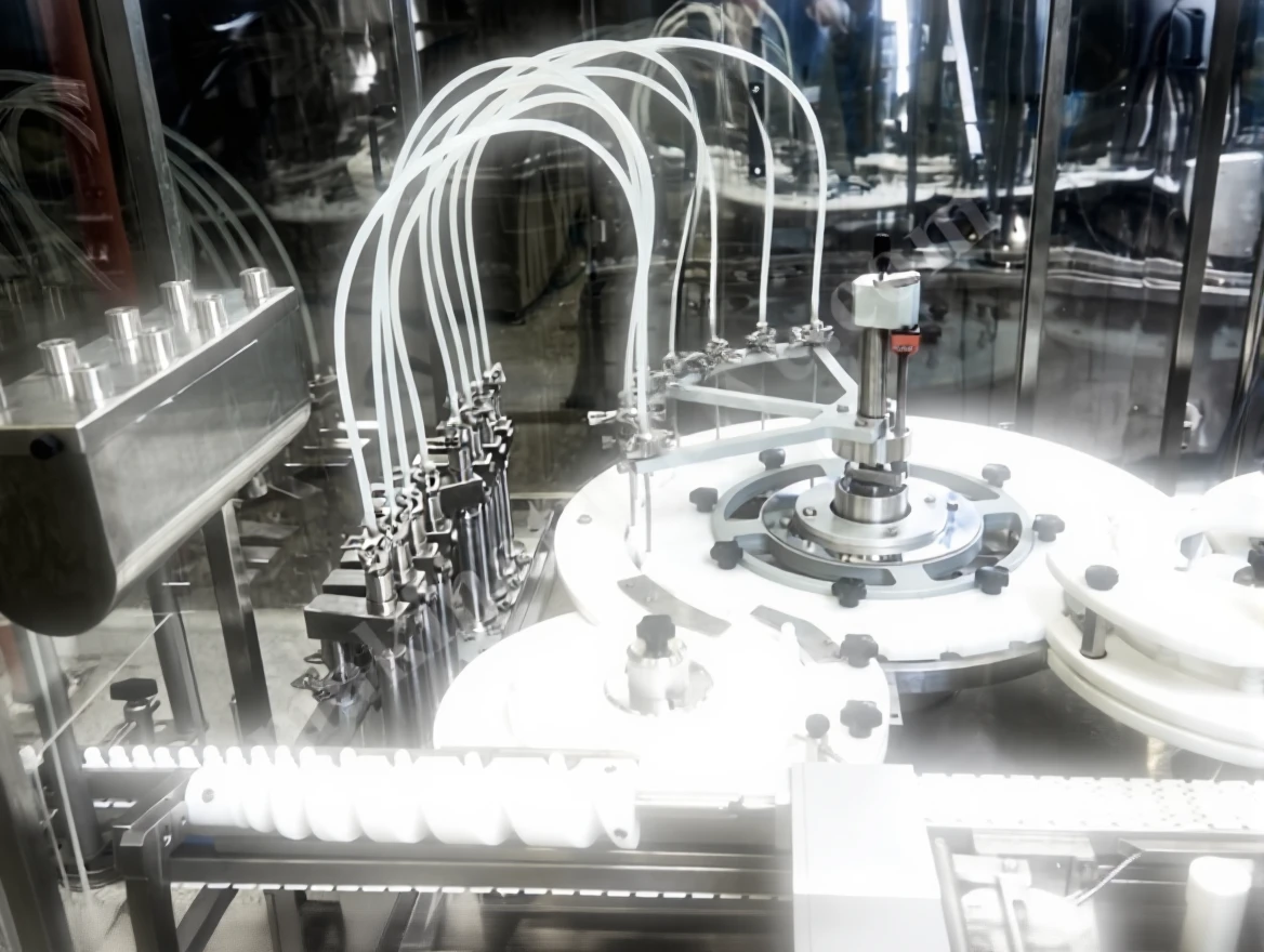 2. The tightening system prepares special molds according to cap shapes and automatically places them on the bottle mouths with precision.