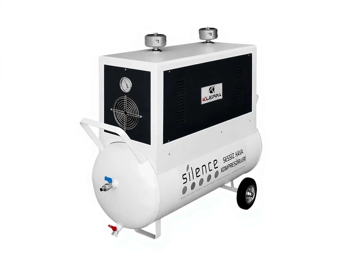The Kleppa DS-02 100L Dual Engine Silent Air Compressor is a powerful and efficient air compressor designed for industrial and commercial use. With its dual motor structure and advanced technology, this model provides high air capacity while maintaining a low noise level for comfortable operation. The DS-02, featuring a 2.5 x 2 motor power, offers strong performance while also ensuring energy efficiency. Each motor, with 5 horsepower, allows the machine to operate continuously and without interruption.