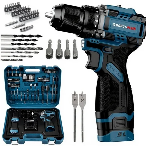 70 Parça 16V 2Ah Yeni Akülü Kömürsüz Armut Batarya Vidalama Matkap Seti Çantalı