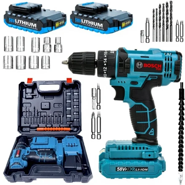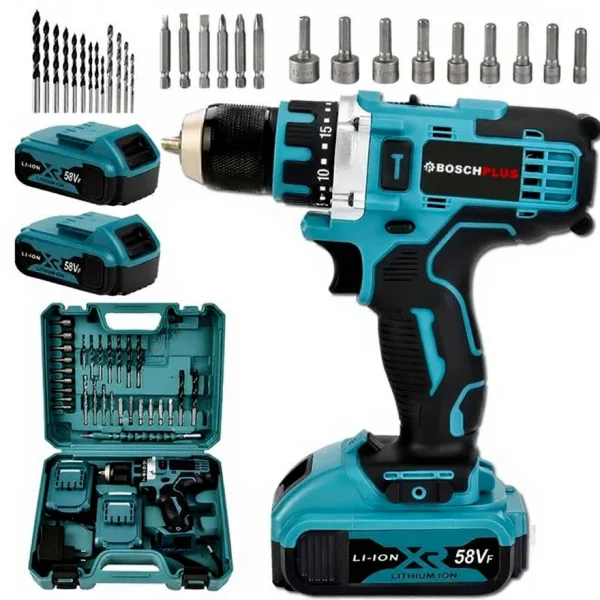 24 Parça 58Vf 5Ah Çelik Mandrenli Akülü Vidalama Matkap Seti