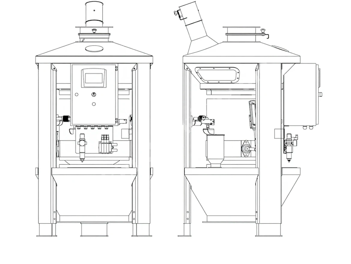 | Model | Hopper Volume | Weighing/Hour | Compressed Air | Installed Power | Weight | Capacity | |||
