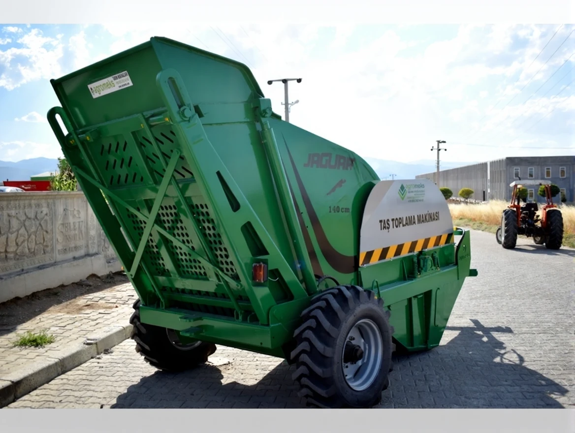 The machine can unload stones from a high level with its field-type hydraulic lifting system, offering a discharge height of 2.6 m. This allows for easy transfer of stones to different loading areas and transport vehicles. The double hydraulic lifting system design enables the machine to be easily used in any area. Various model options are available, including 140 cm, 175 cm, and 200 cm, providing suitable model options for every tractor and land type.