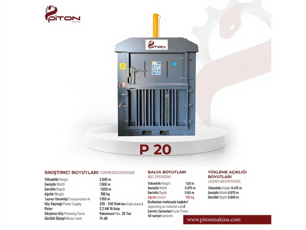 Piton Machine P-20 is an ideal solution that provides high performance, reliability, and efficiency in your business’s waste management processes.