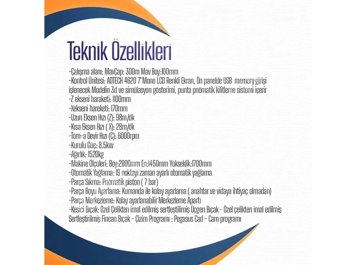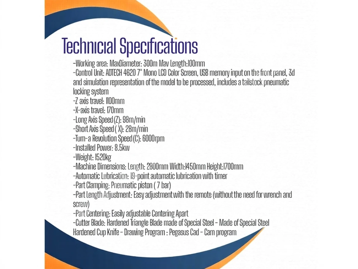 Working area: Max Diameter 300 Max Length 1100mm