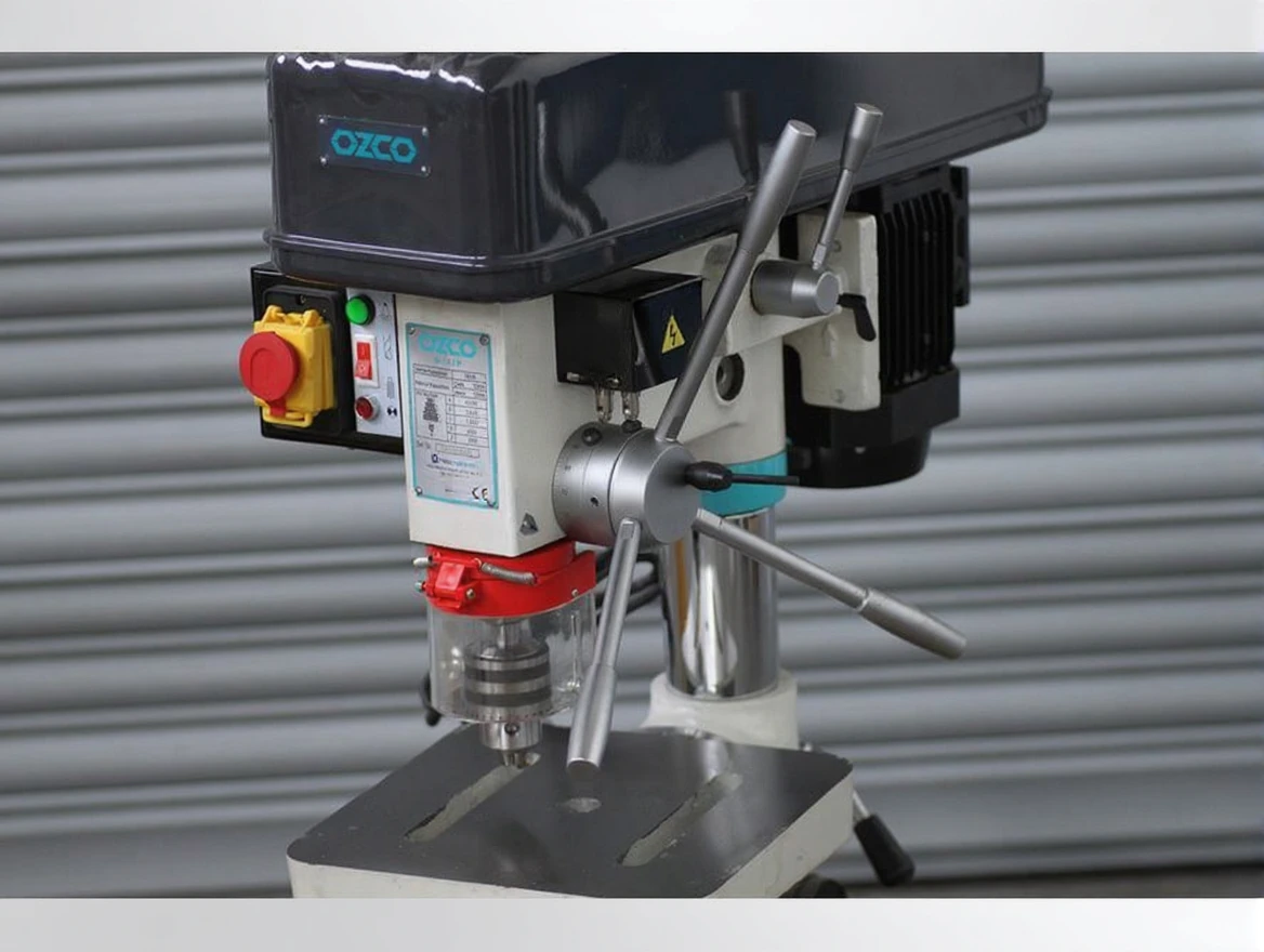 Compliant with CE standards, Emergency Stop Button, Safety switch guard/chuck protector, Safety switch belt pulley cover, Cast table that can rotate 360 degrees around its axis and can tilt ± 45 degrees, Cast base providing low vibration and stable operation, Durable high-efficiency copper wound motor, Double-sided motor belt tension adjustment, Depth measurement and locking system, Adjustable height guard, Aluminum belt pulley cover, High-quality cast table, Precision keyless chuck.