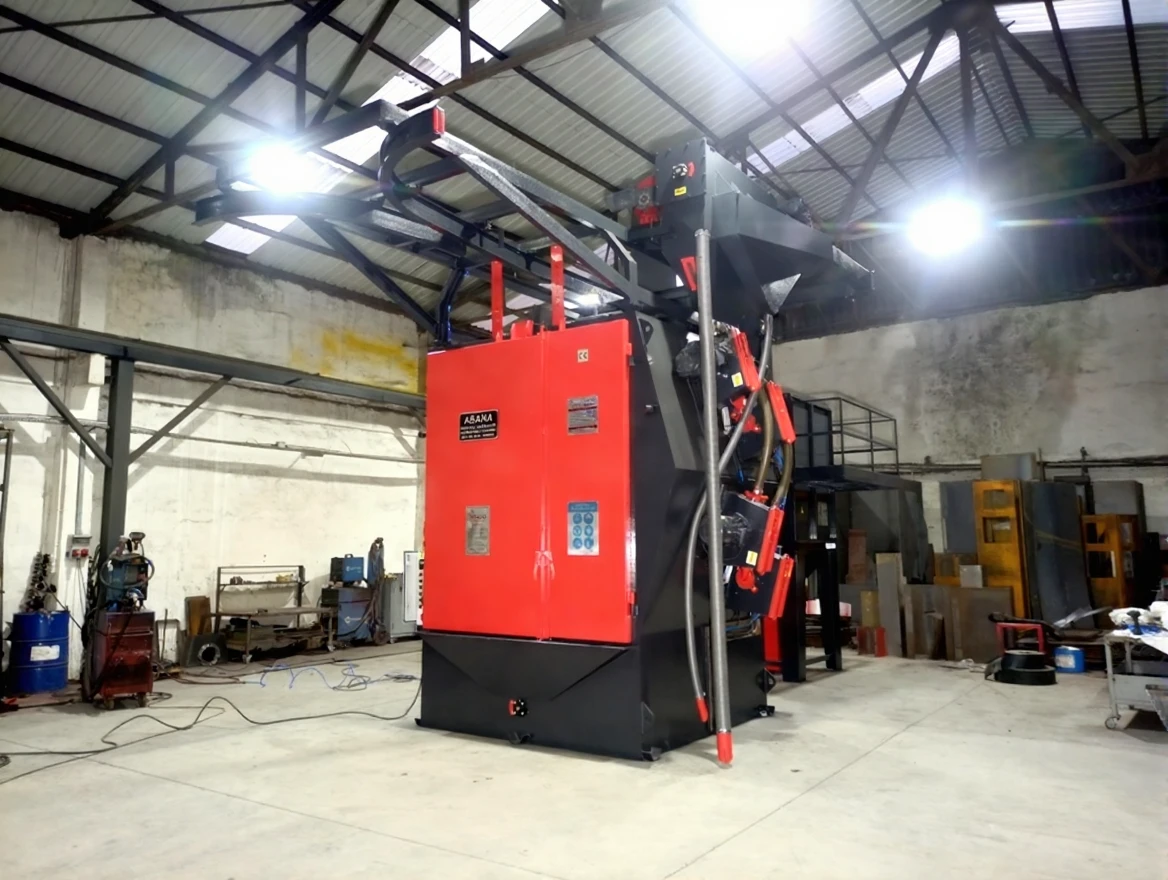 The Abana AKM 2000 Kg Double Hook Blasting Machine is designed for surface cleaning and preparation of large and heavy parts. With its overhead rail design and automatic hook system, this machine offers a wide range of applications in various industrial sectors. Preferred in metalworking, automotive, shipbuilding, and manufacturing industries, this machine quickly and effectively removes rust, oxides, paint, and other contaminants from surfaces. Its durable construction ensures long-lasting use and high efficiency.