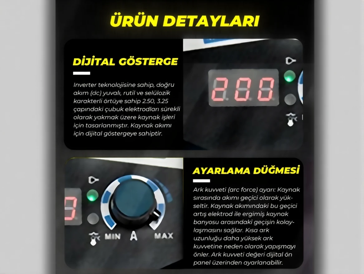200A Dijital Göstergeli İnverter Kaynak Makinası