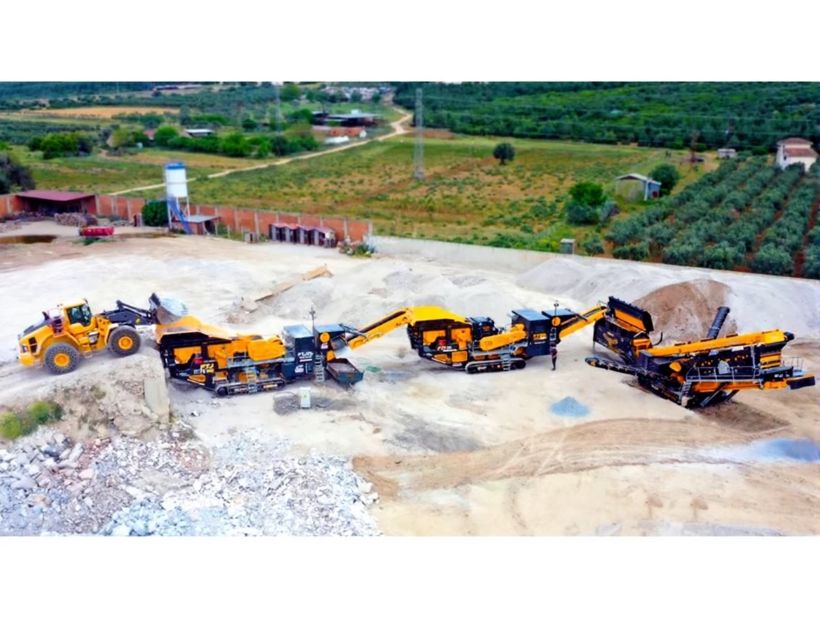 After the FTI 130 Mobile Impact Crusher, the material is sent to the FTS 1560 mobile screen and 3 different materials can be received at the same time.
