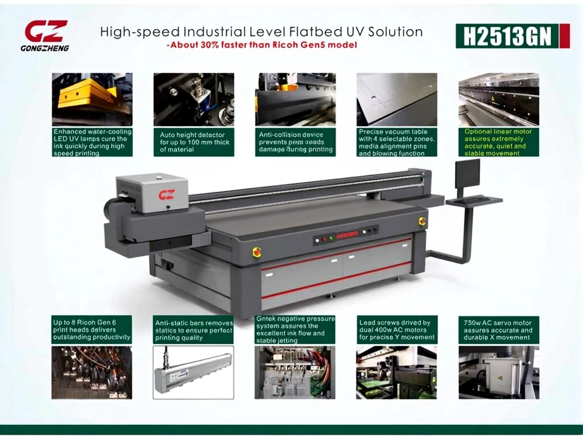 High Speed Industrial Flatbed Led UV Printing Machine