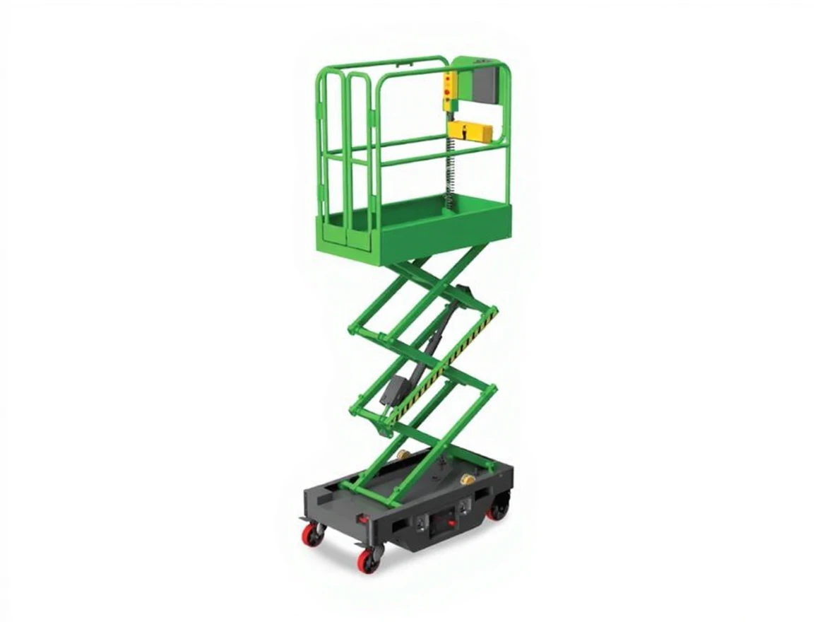 High Safety at Heights, Comfort in Narrow Spaces with AT5.5! Platfon's compact and environmentally-friendly scissor platform model AT5.5 provides safe access up to 5.5 meters indoors and outdoors. It operates silently with an electric drive system, being eco-friendly with zero emissions. This model can maneuver easily even in narrow corridors, offering maximum efficiency in sectors such as warehouses, maintenance, construction, and assembly.
