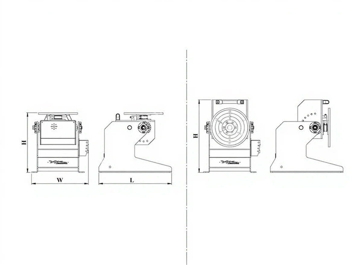 Positioners consist of body, motor, table rotating and tilting systems, electrical panel, and remote operator control unit, offering the best structural protection. For heavy workpieces, positioners are fixed to the ground. Optional T-slots are available on the table to provide quick clamping of workpieces.