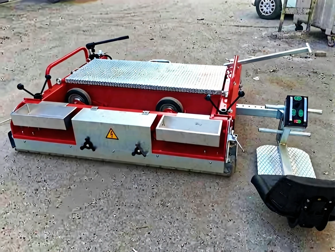The ROE Finisher, designed by Roemac Machine for athletics tracks' floors and children's parks, can apply SBR raw materials to the ground with an adjustable iron temperature setting. In its automatic models, the moving iron's control panel and the finisher's elevation are controlled via hydraulic arm. It allows usage in wider or narrower floors with its 3 different iron length options. It works monophasically and with 220 Volts.