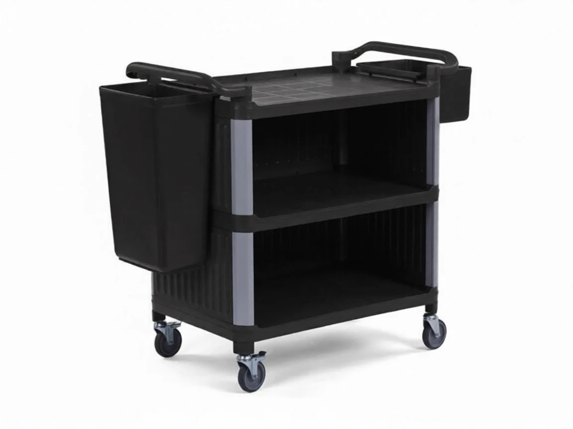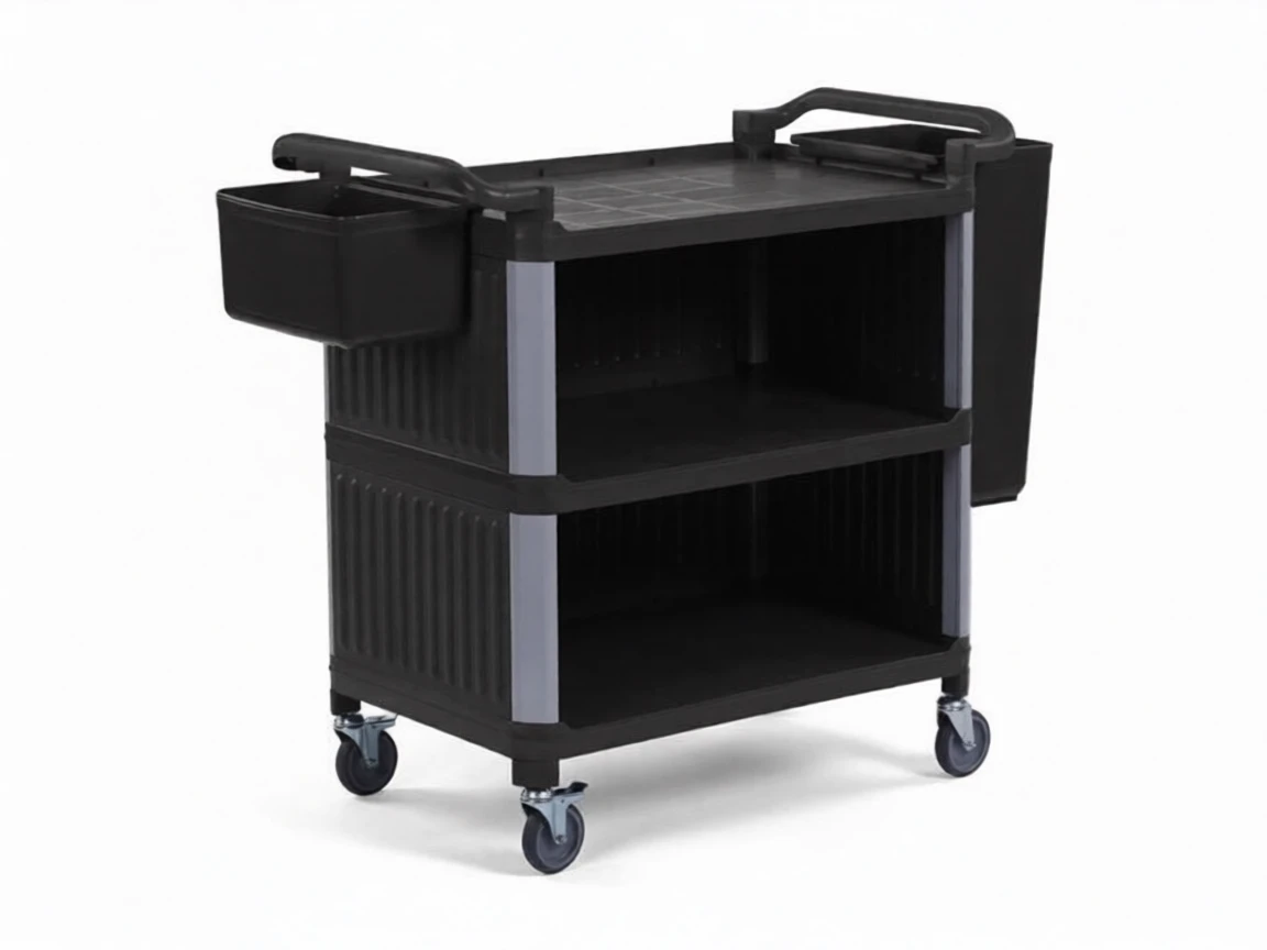 Designed for professional use, the Plastic Service Trolley with its 3-tier closed structure enables the safe and hygienic transportation of food, beverages, and other materials. Its durable black plastic body provides long-lasting use and facilitates service processes.