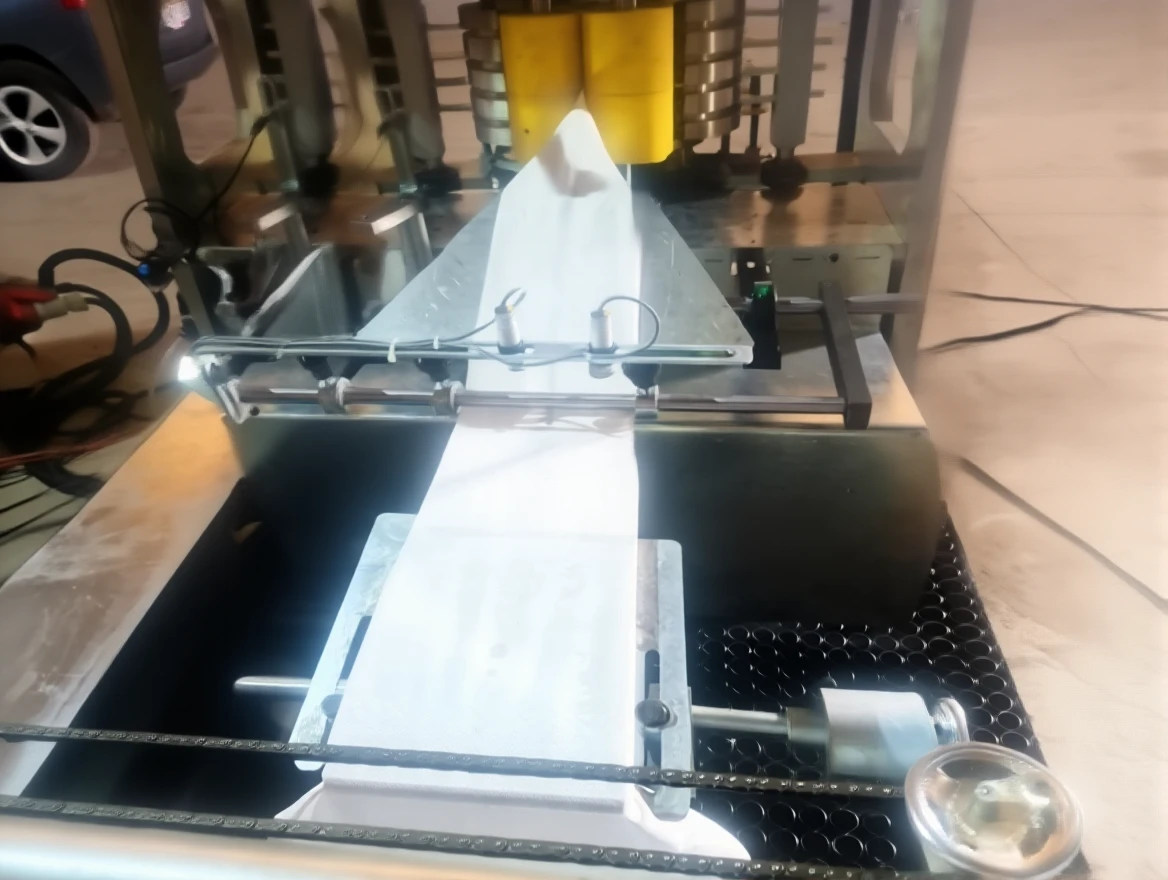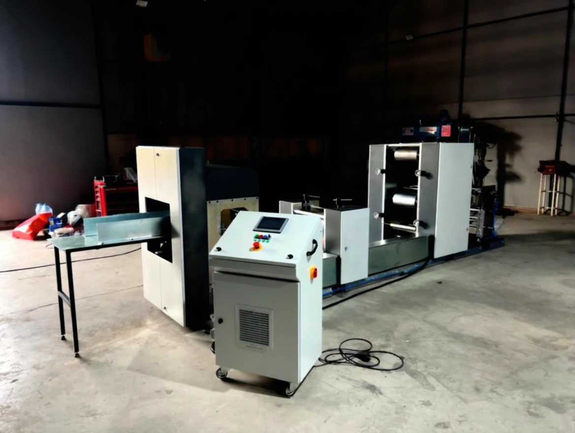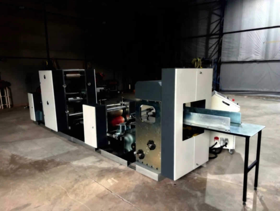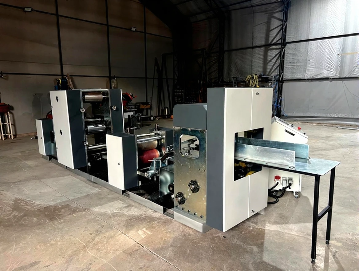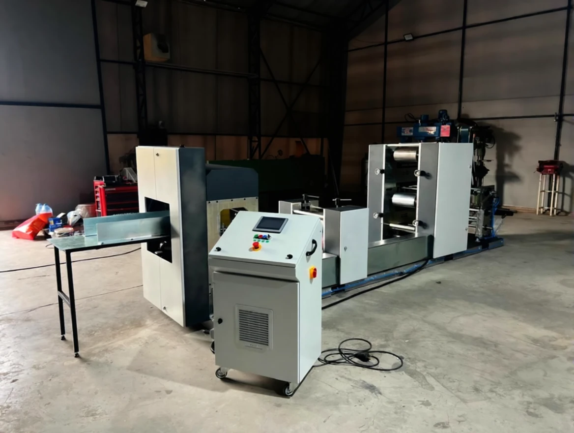 The napkin machine is 33×33 cm in size and has a dual-color printing feature. It has a waiter folding system. It has a PLC screen and can be controlled remotely. It has edge control system, color heating and drying unit. The printing system has a reducer control system.