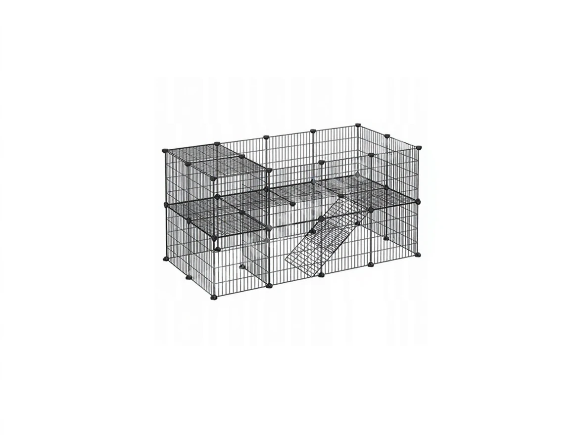 Designed for small animals, it is a portable enclosed cage made of metal wire.