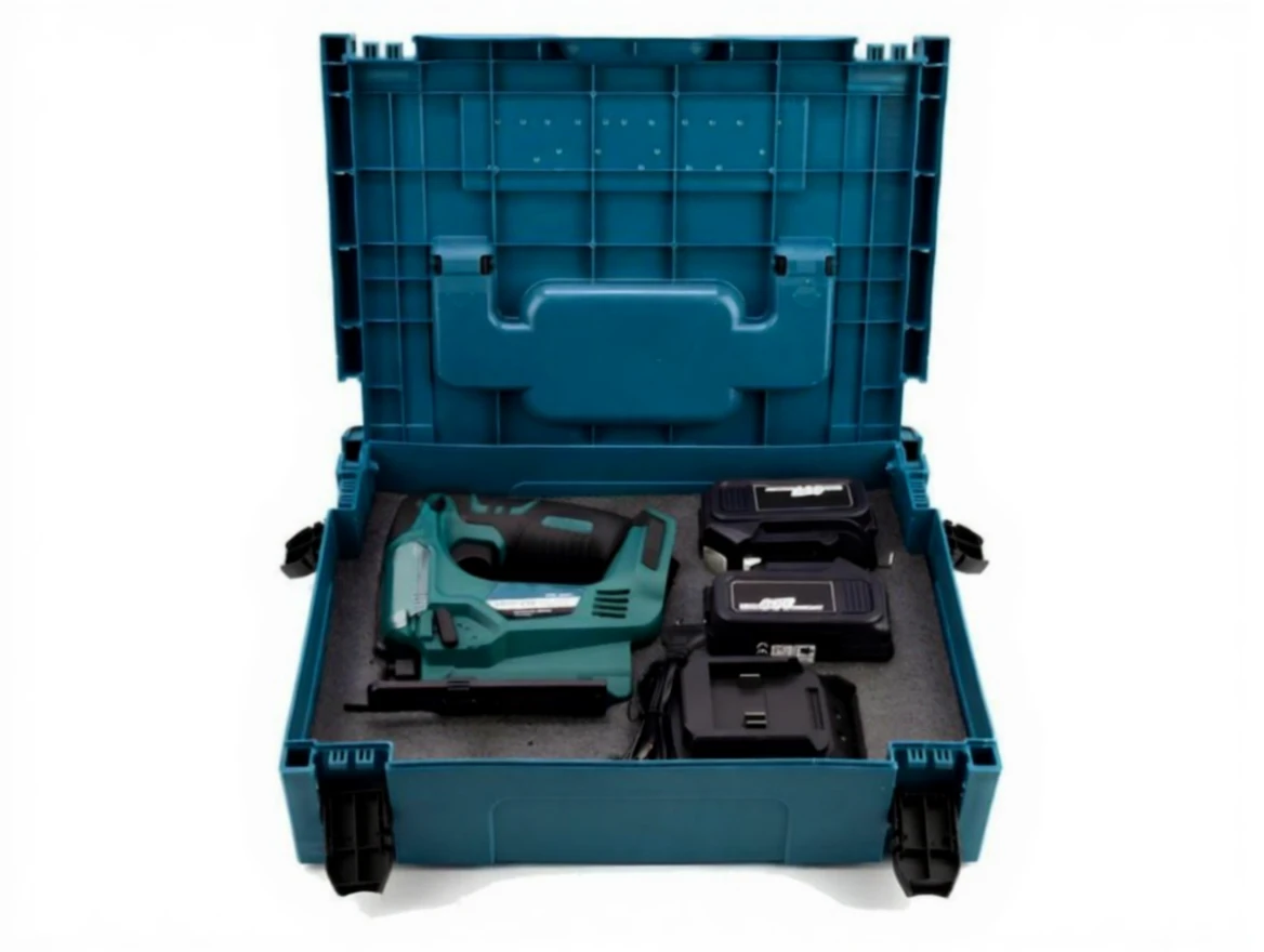 The Cordless Jigsaw MK comes with 2 pieces of 36V 5.0 Ah lithium ion battery and a fast charger. The battery indicator shows the battery level. The charger fully charges the battery in 60 minutes. In addition, the Cordless Jigsaw MK comes with a carrying case to store the blades and accessories.
