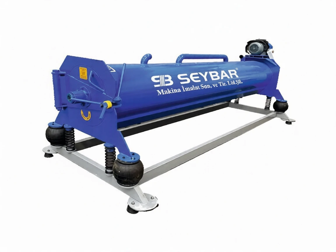 The machine's heart, a 4 kW (5.5 Hp) powerful motor, operates at a speed of 1200 revolutions per minute, removing up to 95% of the water from the carpet. The 38×270 cm drum capacity allows even large carpets to be easily squeezed. The drum structure is made of 2.5 mm thick chrome sheet, ensuring durability and resistance to rust.