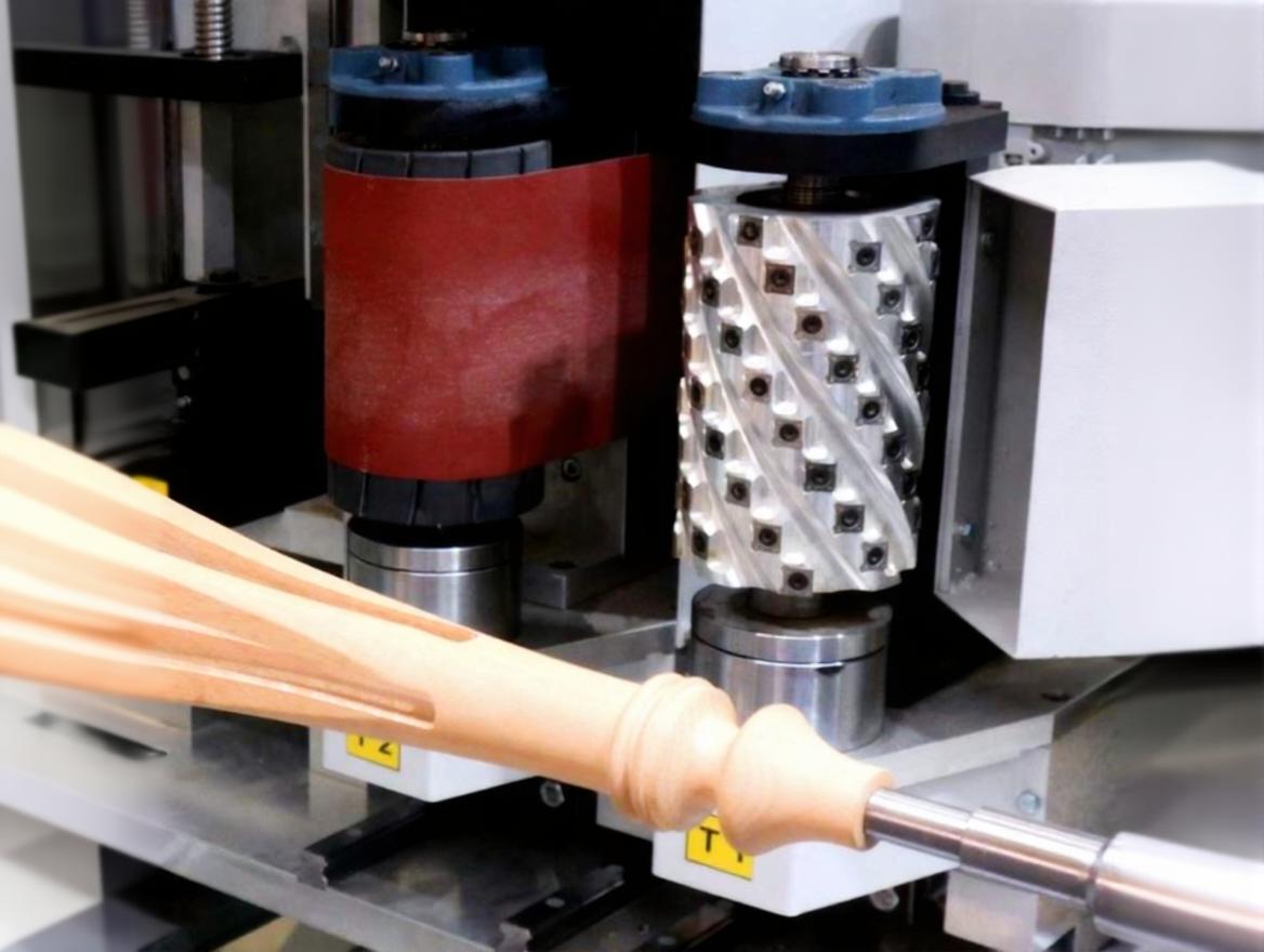 JOKER, a 4-axis CNC machining center and wood lathe, offers high precision and efficiency for modern furniture manufacturers. This machine is designed to perform multiple operations such as shaping, turning, sanding, and 4-axis detail machining with a single unit. It is highly suitable for the production of products like chairs, tables, sofas, cabinets, and furniture legs. In addition to turning operations, it easily performs engraving, motif processing, drilling mounting holes, dovetail channel cutting, and pattern engraving. JOKER is equipped with 6 different machining units: shaping, turning, detail milling, sanding, detail sanding, and turning with a saw. These machining units are optional and can be customized, with 5 different configuration options available.