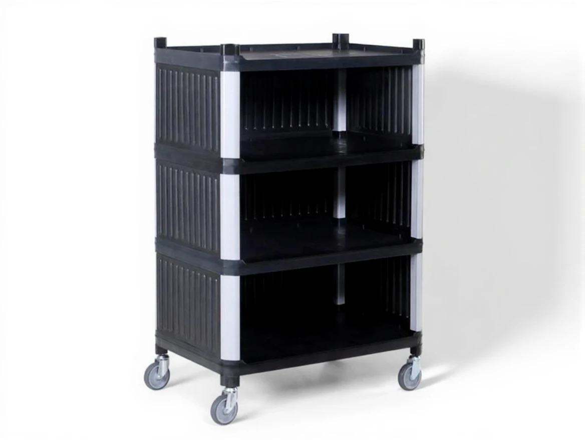 This closed 4-tier plastic shelf, easily transportable thanks to its wheeled structure, offers a practical solution for hygiene and storage needs. Its durable structure ensures long-term use. It is ideal for industrial kitchens, hotels, and storage areas.