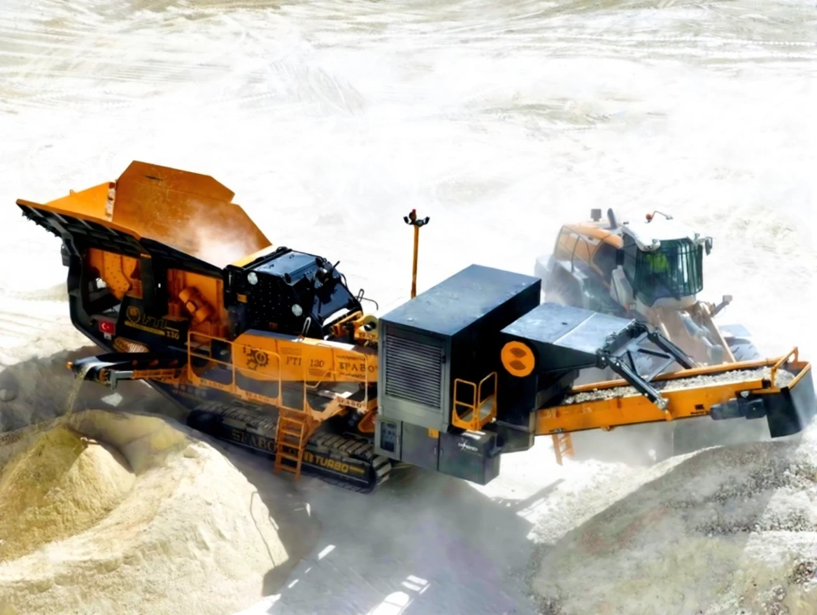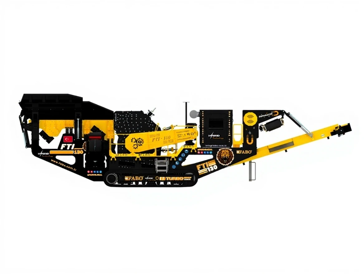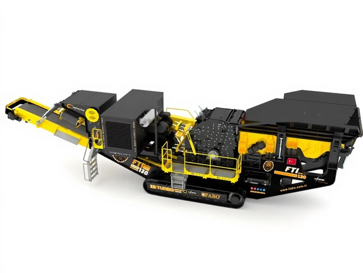 Fabo tracked impact crusher FTI-130 is a complete mobile system consisting of a hydraulic-driven tracked system moving at 1 km/h, a vibrating feeder, an impact crusher, foldable stock belts, a control unit, and a diesel generator. In today's conditions and technological processes, businesses have started to think about how to make their operations more efficient. While making them more efficient, they always consider factors such as the machines they use being operational, low cost, and personnel needs. Our crushers can perform crushing operations with high performance even in the most challenging mining sites with their specially designed body and compact structure. Customization can be done with Jaw Crusher, Primary and Secondary Impact Crusher, or Cone Crusher in our tracked systems.