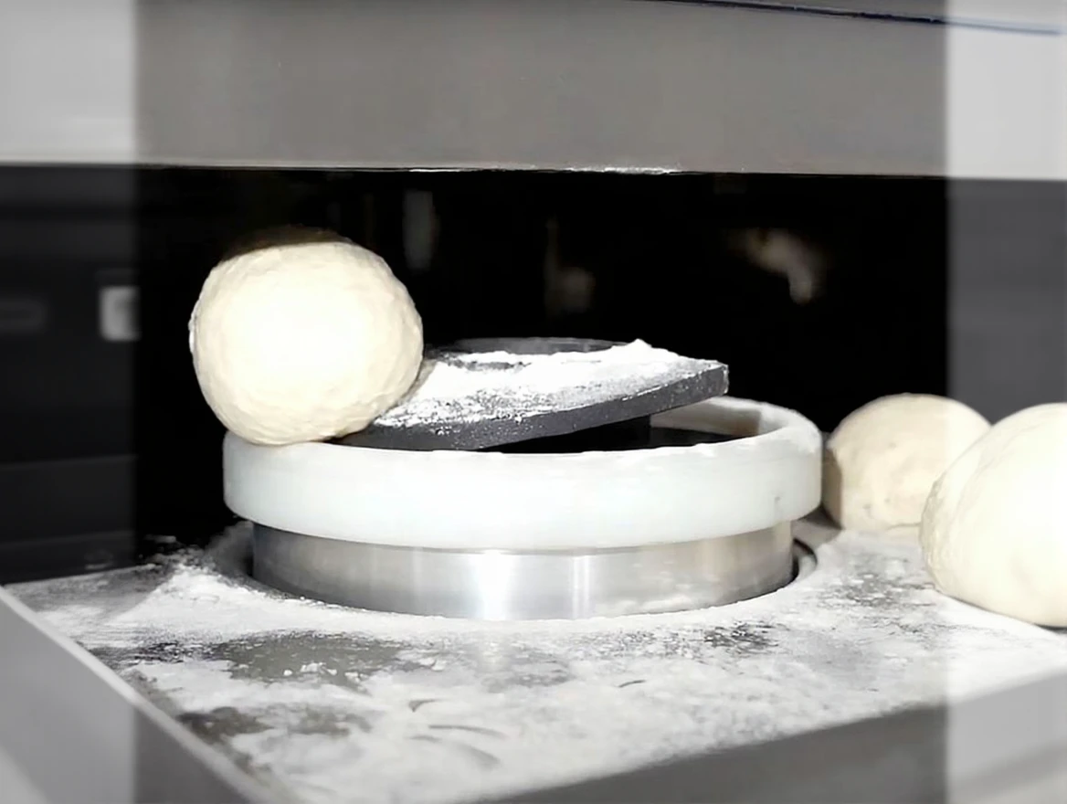 The new generation dividing system allows the dough to be shaped in a round, smooth and compact way. This not only helps to achieve visually impressive results, but also ensures that the dough is spread more homogeneously during baking. This technology, which improves production quality, guarantees that each dough ball is of equal size and therefore has the same baking quality.