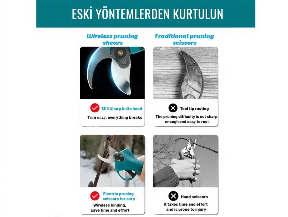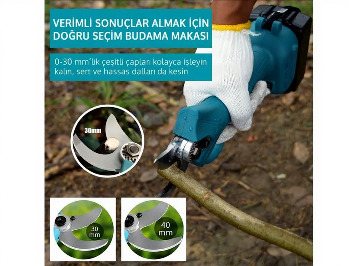 You can easily carry out your vineyard and garden branch pruning works with the rechargeable branch pruning and vineyard shears. It provides comfortable use with its 40mm mouth opening.