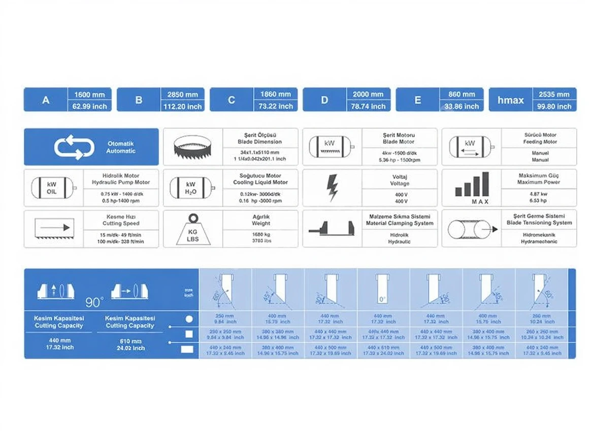 420X600 Mm Inclined Semi-Automatic Band Saw Machine