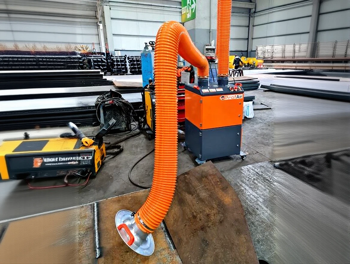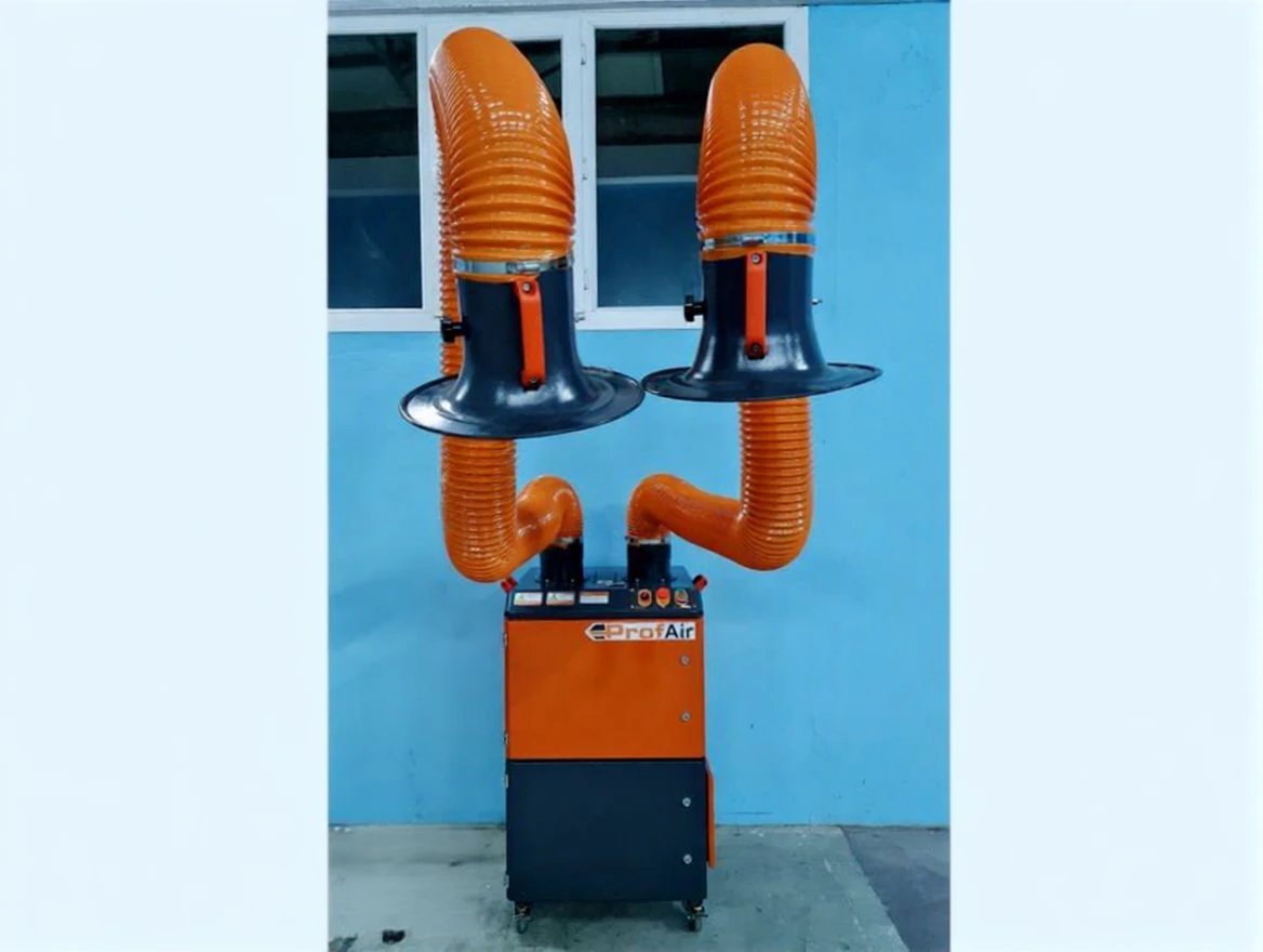 ProfAir M20P is designed as a double arm mobile filtration unit that filters harmful gases and fumes from welding, cleaning the air in the environment. It also effectively filters bad odors. By releasing the cleaned air back into the environment, it prevents heat loss and saves energy.