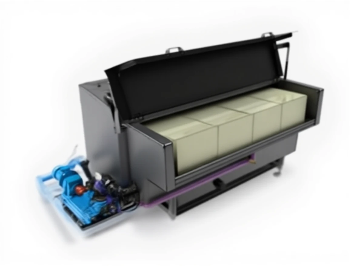 Glass wool insulated rectangular reservoir.