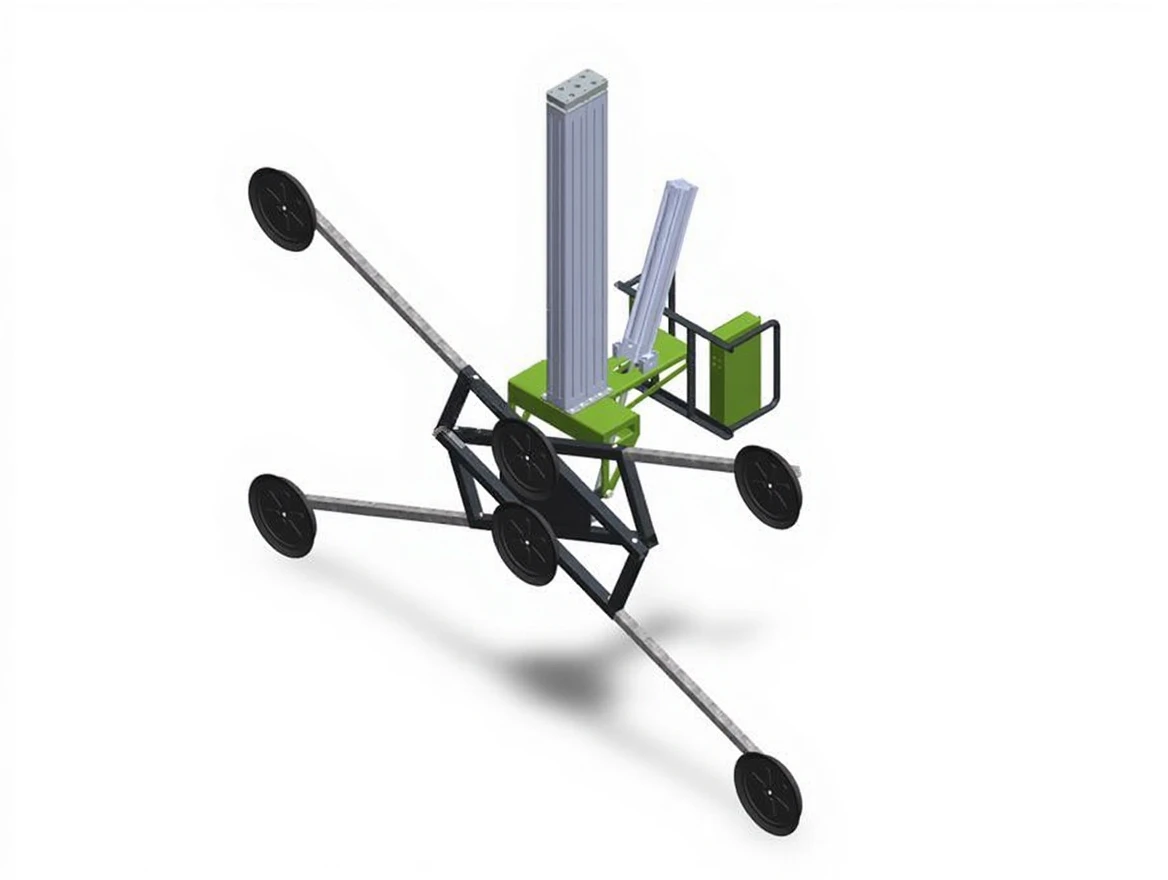 This model is equipped with a total of 6 suction cups (290 mm in diameter), with 2 in the center and 4 around the perimeter, providing safe transportation of large surface materials. Extendable suction arms facilitate the gripping of large panels.