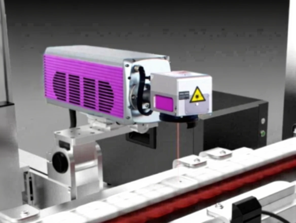 50W Fiber Dynamic Line Laser Coding Machine – FLYMARK application.