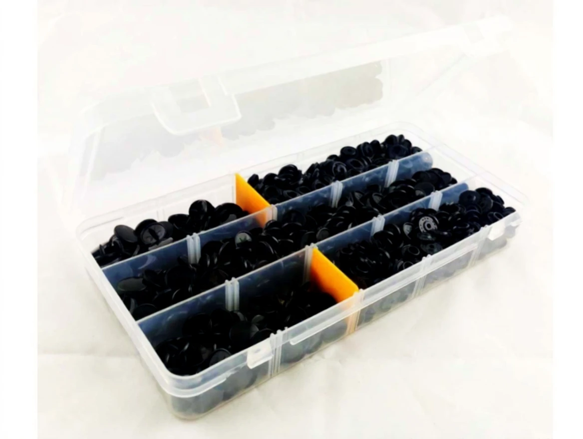 These 12.5 mm plastic black snap buttons are perfect for various sewing and crafting projects. They come neatly organized in a storage box for easy access and convenience.