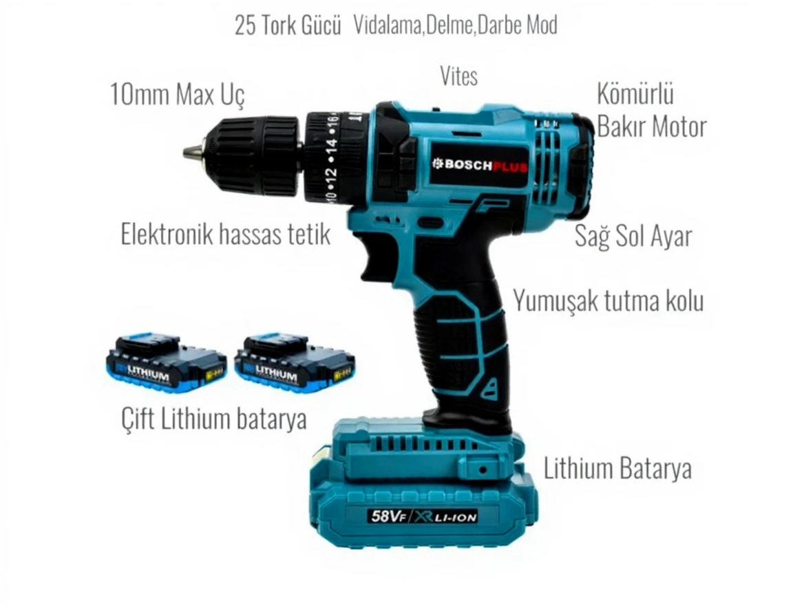 58Vf Akülü Darbeli Vidalama Matkap Seti