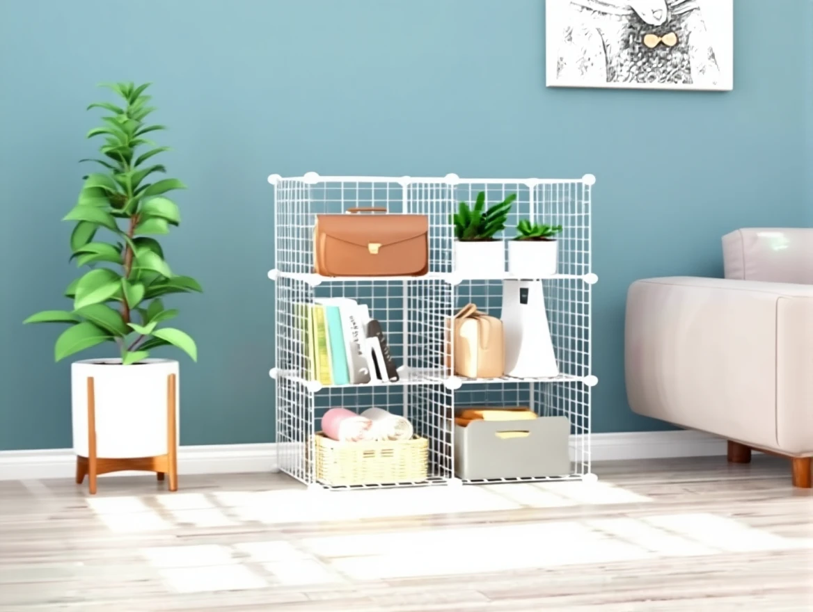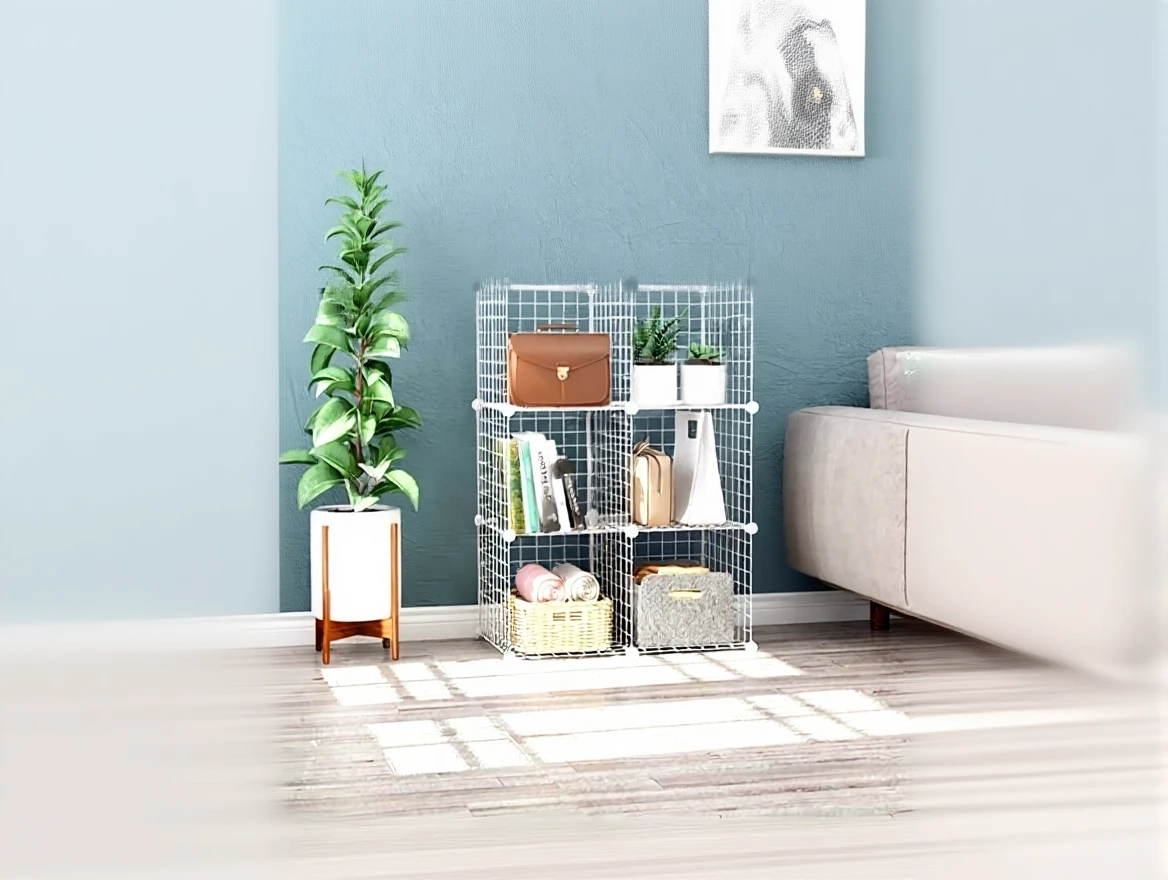 6 Compartment Metal Wire Portable Modular Toy Cabinet Multi-Purpose Organizer Shelf
