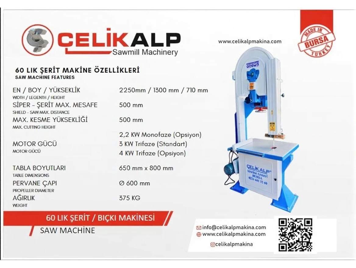 Çelikalp 60-Inch Band Saw Machine is one of the strongest options in the industry with its durable structure and high performance. Designed to meet all cutting needs with advanced motor options, custom-made blades, and a quality bearing system, this machine can be safely used for many years, increasing your productivity while providing savings with high efficiency and low maintenance needs.