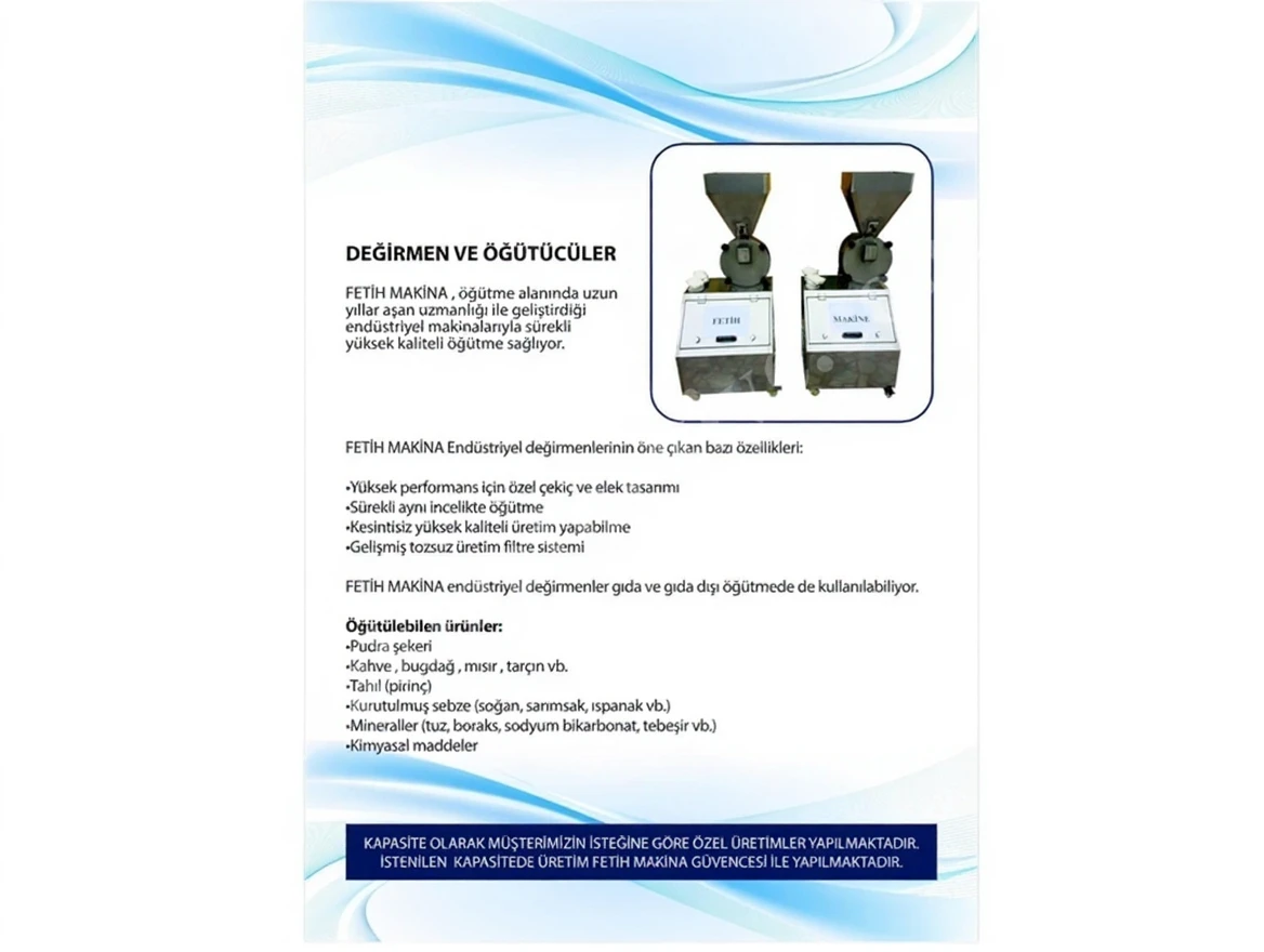 FETİH MAKİNA industrial mills can be used for both food and non-food grinding.