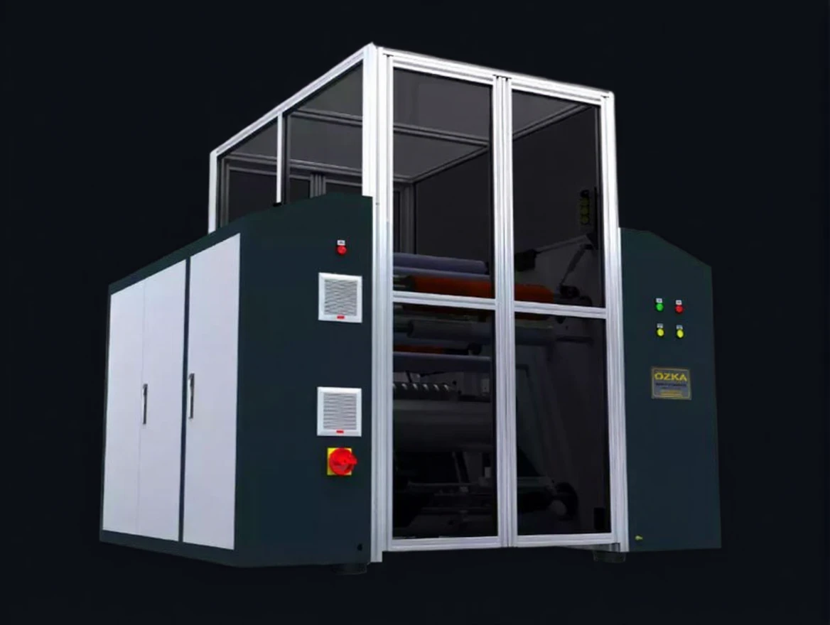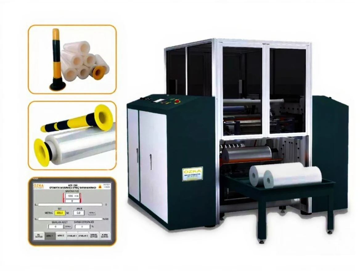 Özka Machine ACR 1500 M wraps without using a measure the 8-23 micron thickness food stretch on jumbo reels into coils of 300-1500 meters in length.
