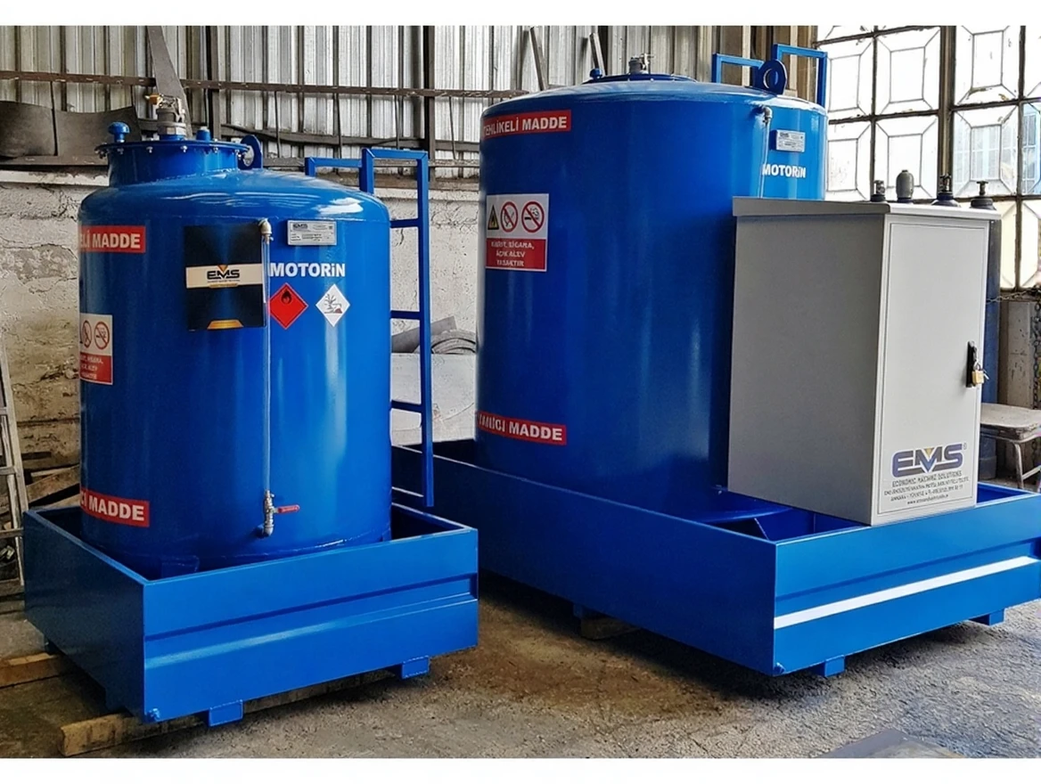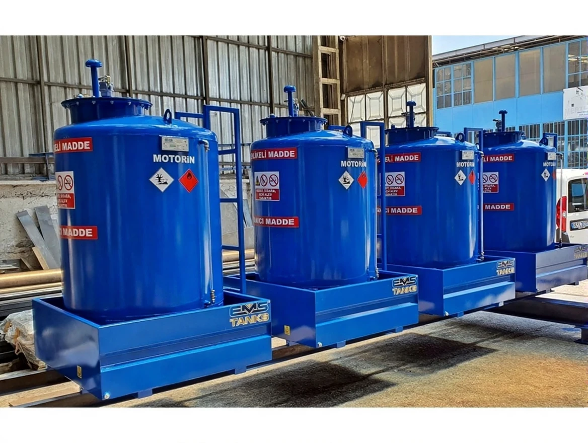 DIESEL TANKS WITH HIGH VOLUMES ARE PRODUCED BY BENDING STEEL CARBON SHEET; IT OFFERS PRACTICAL, RELIABLE AND ECONOMIC SOLUTIONS TO FACTORIES, CONSTRUCTION SITES, MINES, FARMS, COMPANIES WITH VEHICLE FLEET OWNERS AND LOGISTICS COMPANIES. THE MATERIALS USED AND ALL CONNECTION PRODUCTS ARE MANUFACTURED TO BE COMPATIBLE WITH DIESEL FUEL.
