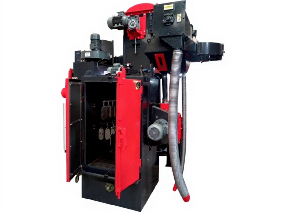 The Abana AKM 800 mm Single Hook Blasting Machine is an ideal solution for surface cleaning and preparation of large, heavy, and complex parts. This hanging blasting machine consists of a main body, turbines, elevator, hook system, separator, and filter. Working with an overhead rail system, this machine is perfect for parts that cannot be mass-produced and are particularly complex, heavy, or large.