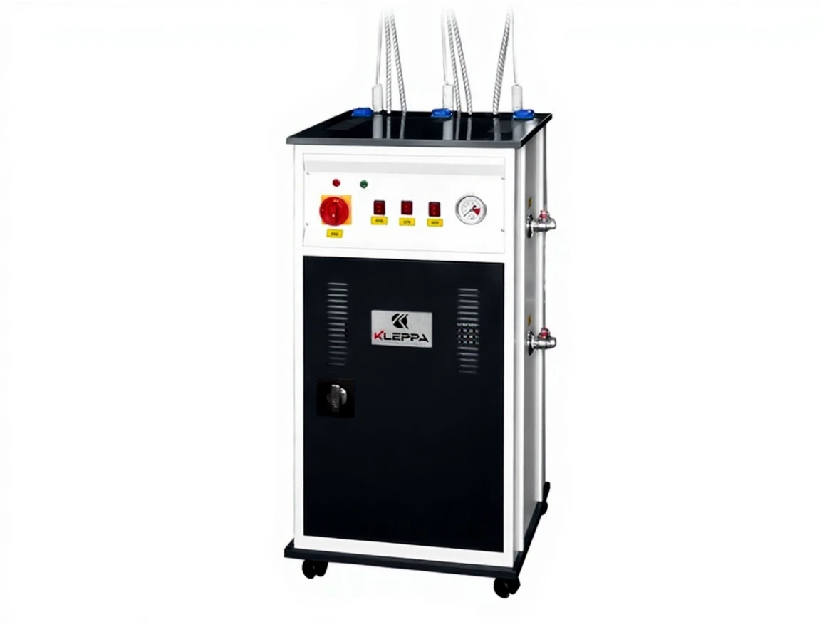 The Kleppa KL-03 9.75 Kg/h Fully Automatic Three-Iron Steam Generator is an ideal solution for businesses with industrial steam needs. This machine is capable of running three electric irons simultaneously, offering high efficiency in business processes. Its compact design allows it to be used in confined spaces, and its wheeled structure makes it easy to move between workspaces, providing great mobility.