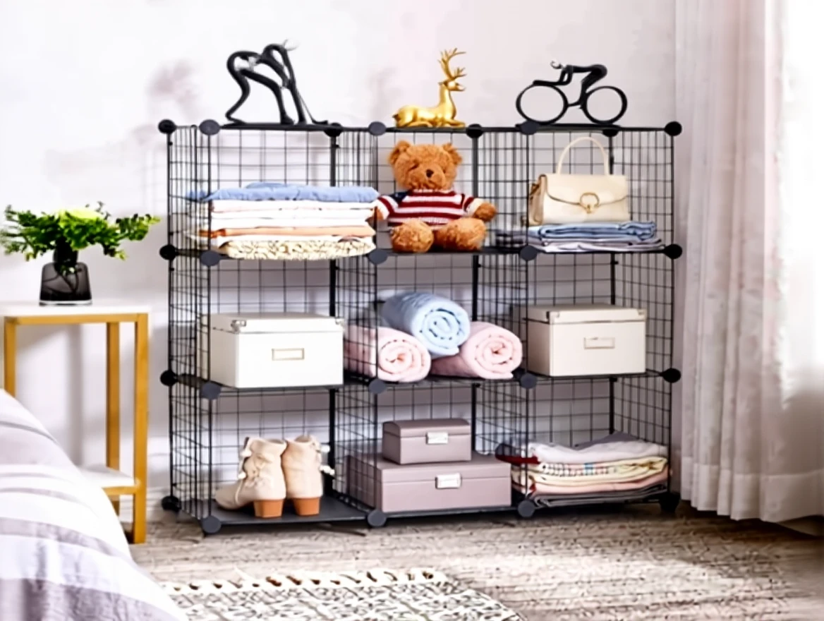 12 Compartment Metal Wire Portable Modular Toy Cabinet Multi-Purpose Organizer Shelf
