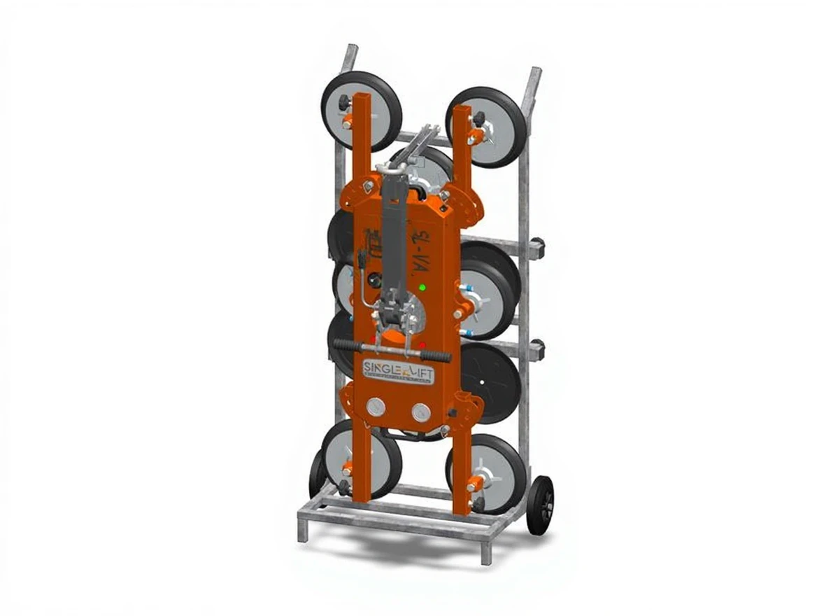 Equipped with dual vacuum pumps, dual safety circuits, and a cross safety system, the SL-VA-900 is manufactured in compliance with TS EN 13155 standards. The 300 mm diameter suction cups provide strong and secure grip on smooth surfaces.