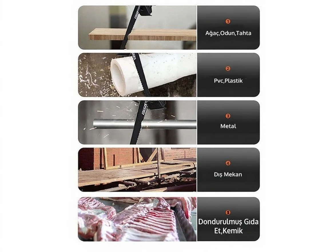 It is suitable for cutting all kinds of Bone, Meat, Wood, Metal, PVC, Yutong, Gas Concrete, Brick, and Pallet thanks to its Protective Motor