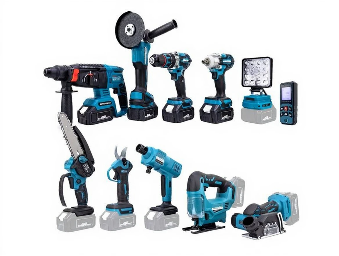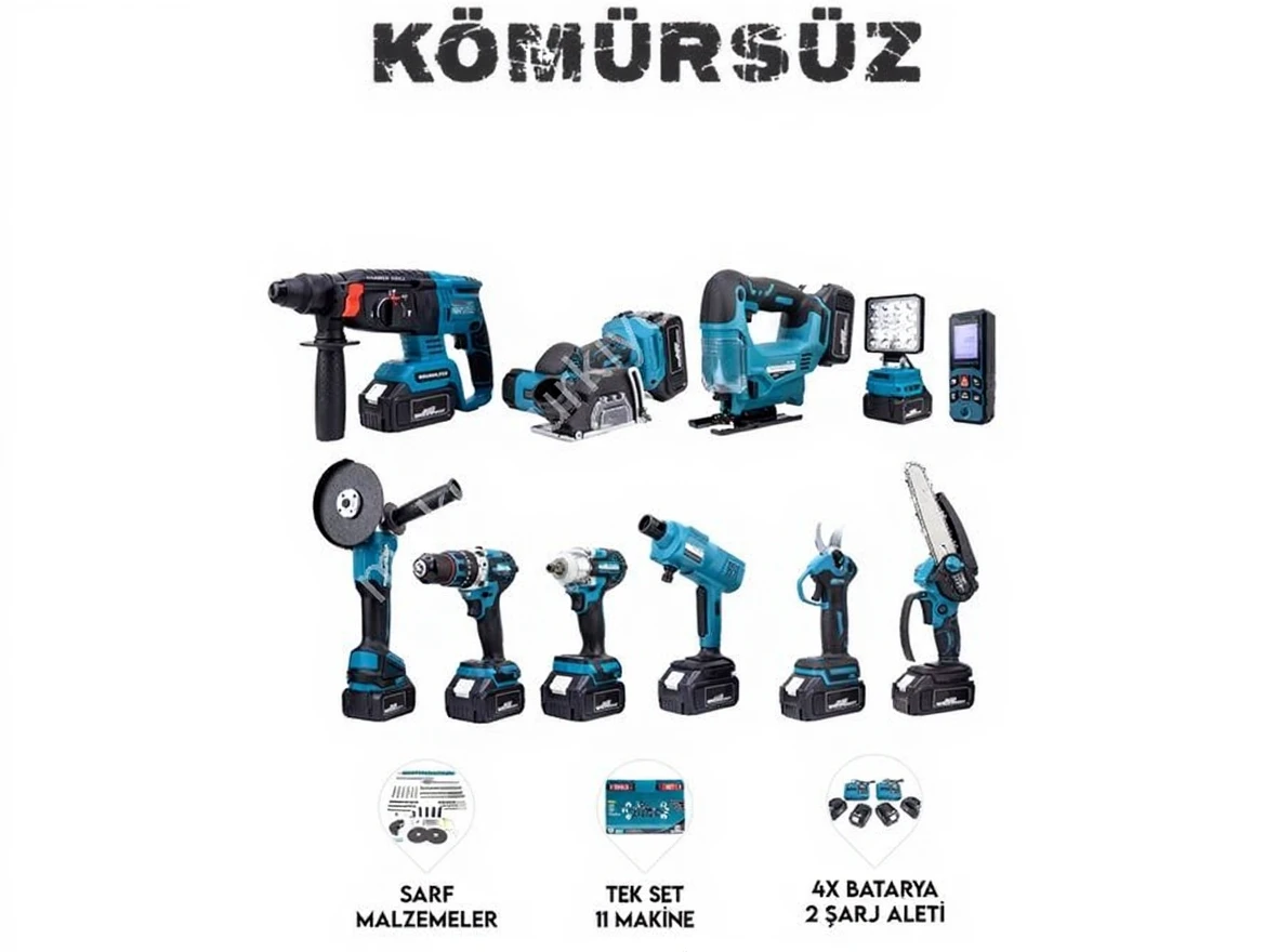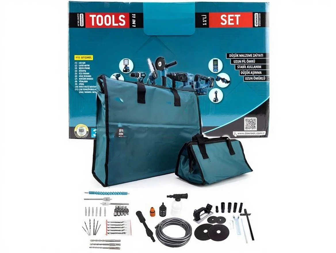 CHELİKBEİ EEA458 Cordless 11 Piece Set (LED Light, Laser Measure, Nut Tightening, Jigsaw, Car Wash, Pruner, Pruning Saw, Impact Drill, Spiral, Hammer Drill, Multi-function Grinding)