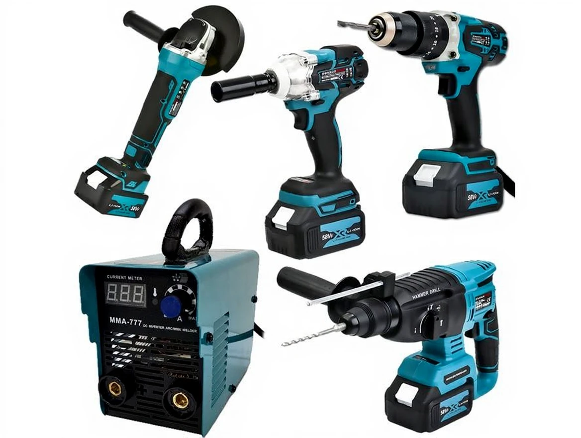 5 products in one set; Breaker, grinder, Cordless drill, nut driver and welding machine