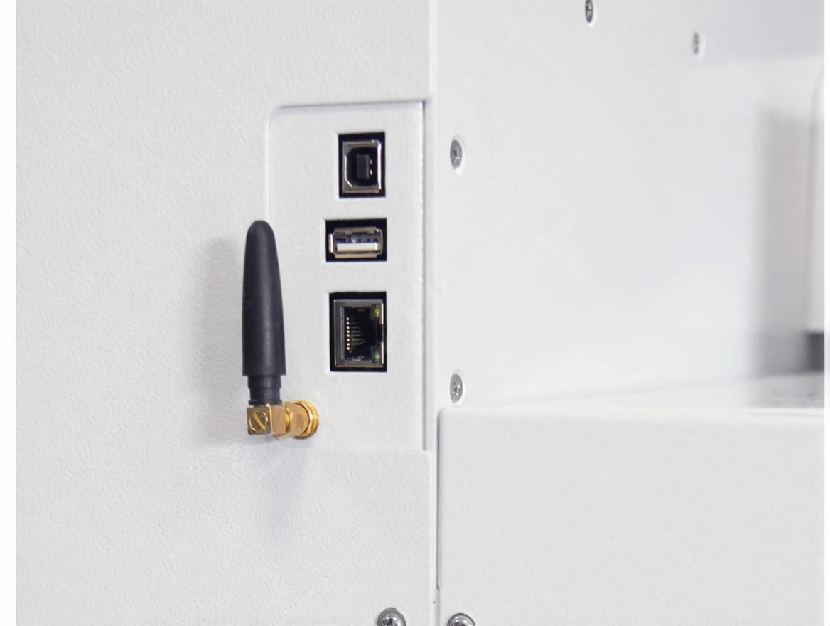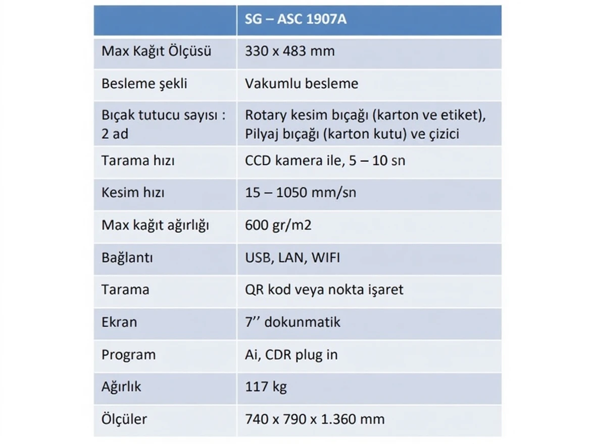 The SAGA ASC-1907A label and cardboard box cutting machine is a label cutting machine that is unmatched in compact size with a vacuum automatic feeding system. You can perform a box cutting in a very short time against taking up very little space in your workplace. Because you can use cutting and perforation tips simultaneously in the machine’s cutting head with 2 blade holders. While other compact machines with automatic feeding have a single blade holder, the ASC-1907A model has 2 blade holders. The document feeding compartment is elevator-type and 18 cm high. Additionally, if you identify your jobs with a QR code, even if you place your jobs mixed in the compartment, the machine defines the job to be cut and performs the cutting accordingly. The ASC-1907A model label cutting machine works with CDR and Ai plug-in. It has Wi-Fi and LAN connectivity features.