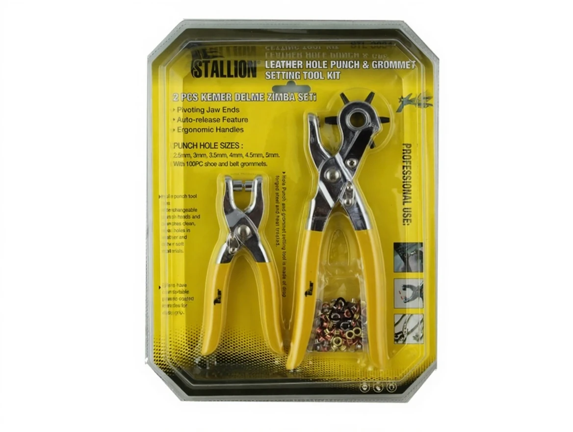 This comprehensive kit is designed for punching holes, setting rivets, and attaching eyelets to belts and straps. It includes high-quality tools and accessories to ensure precise and efficient work.