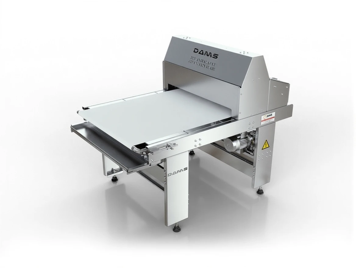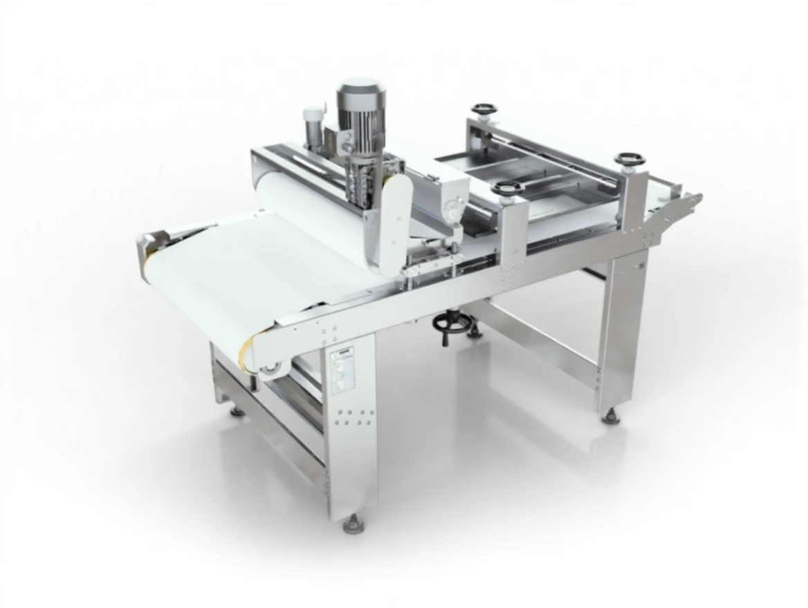 - After the cut and rolled pastry dough reaches the desired thickness in the processing belt (crushing between the two belts), it passes directly from the spreading belt.